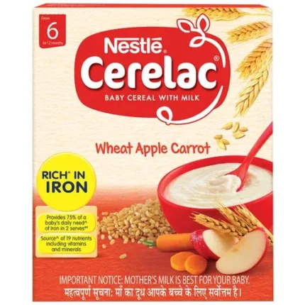 Nestle Cerelac Baby Cereal with Milk – Wheat Apple Carrot, 6 to 12 Months, 300 g Bag-In-Bo