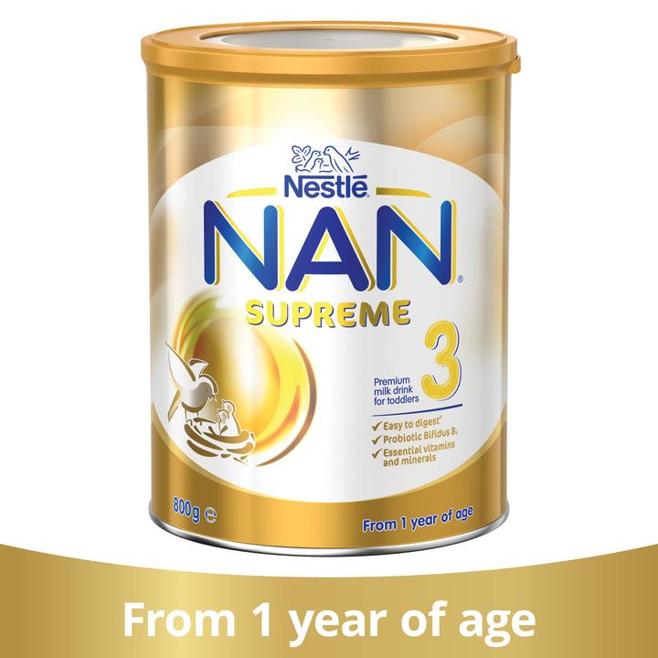 NAN SUPREME 3 Toddler Milk Drink is a premium, nutritional milk supplement designed for toddlers from 1 year of age when energy and nutrient intakes may not be adequate.