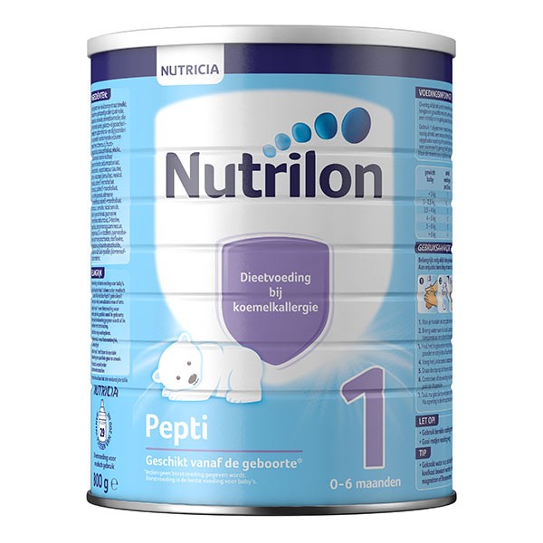 Nutrilon Pepti 1 baby food contains specially treated cow’s milk protein, which makes the body unable to recognize the cow’s milk protein. In addition, Nutrilon Pepti 1 contains a patented mix of prebiotic fibres, vitamins C & D as well as unsaturated omega fatty acids DHA and AA. As soon as your baby is 6 months old, you may switch to Nutrilon Pepti 2. Nutrilon Pepti 1 is suitable for babies that have a proven cow’s milk allergy. Always consult your doctor or clinic before using Nutrilon Pepti 1.