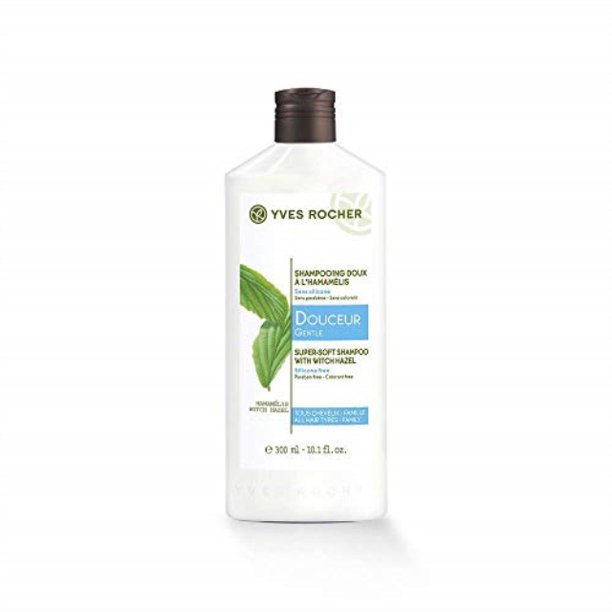 yves rocher hamamelis super-soft shampoo 300 ml./10.1 fl.oz. tested under dermatological supervision to ensure it is gentle enough for sensitive scalps and the hair of children over 3 years old. – botanical cleansing base.- easily biodegradable formula.- recyclable bottle. witch hazel: world of sweetness. witch hazel is a small tree known for its softening, soothing properties. when formulating their family toiletry range, yves rocher vegetal biology laboratories selected an organic witch hazel extract, obtained according to special rules of cultivation and extraction designed to deliver its properties intact. key botanicals: organic witch hazel extract, washing base from botanical origin. more than 98% natural ingredients.